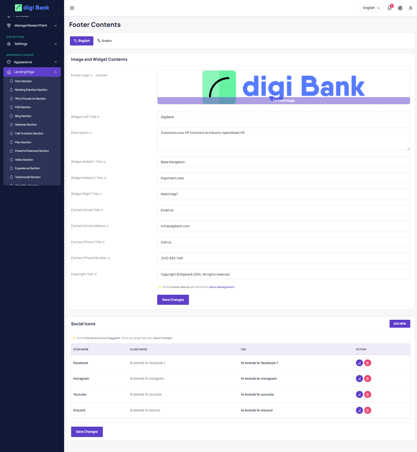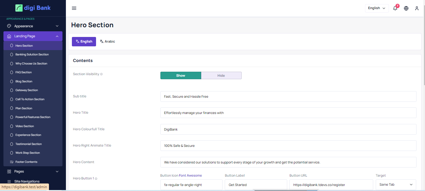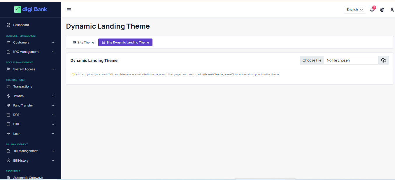 Admin can upload any html template here and need to put @lasset('landing asset') on all the