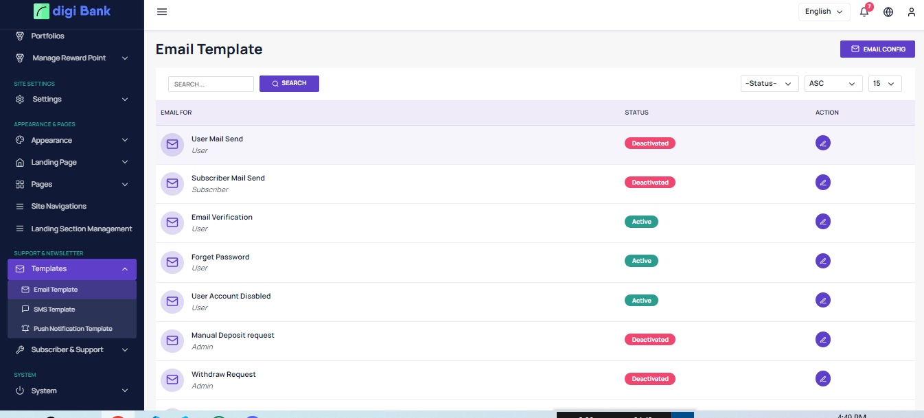 There is Email templates to send email to the user for their activities.
