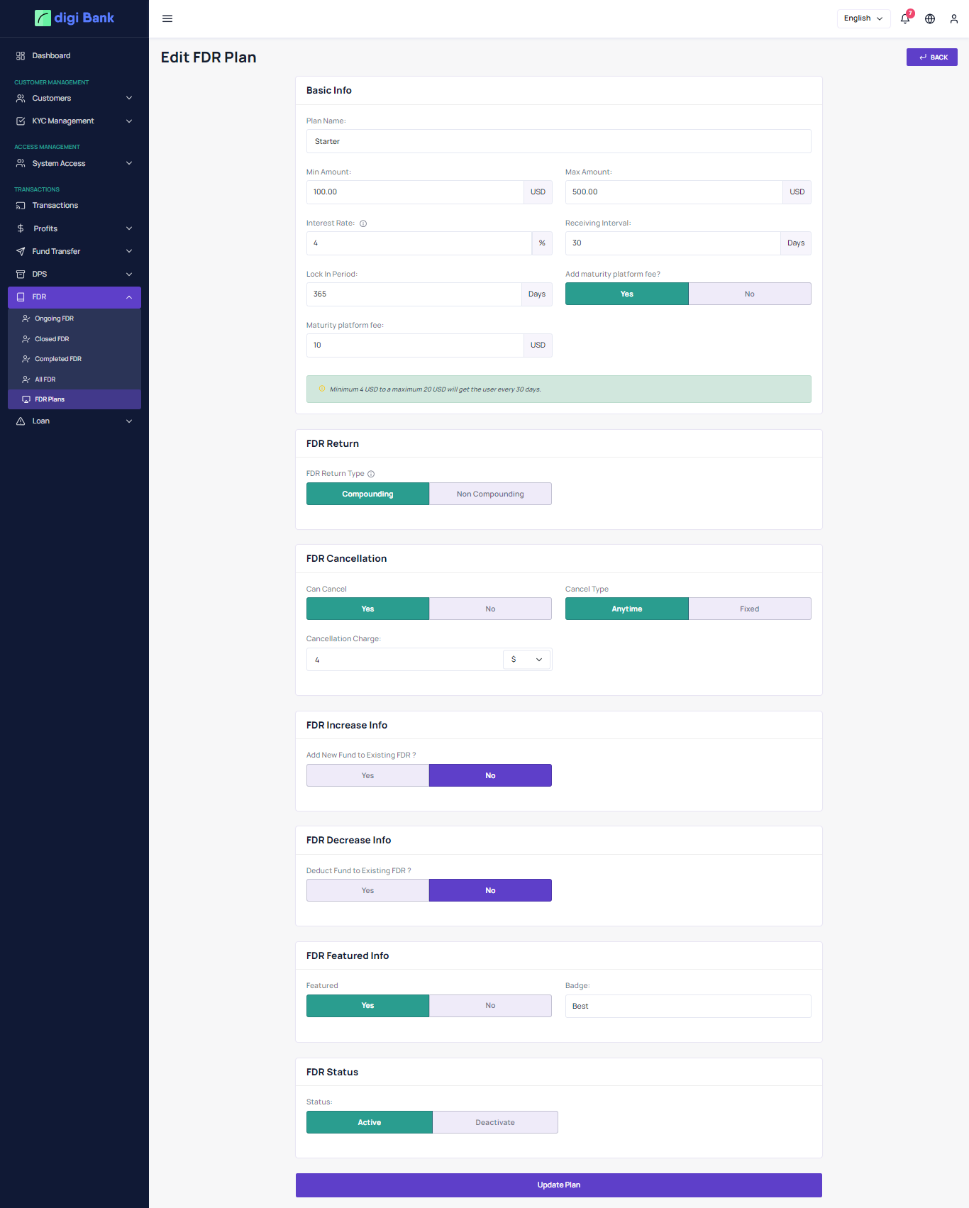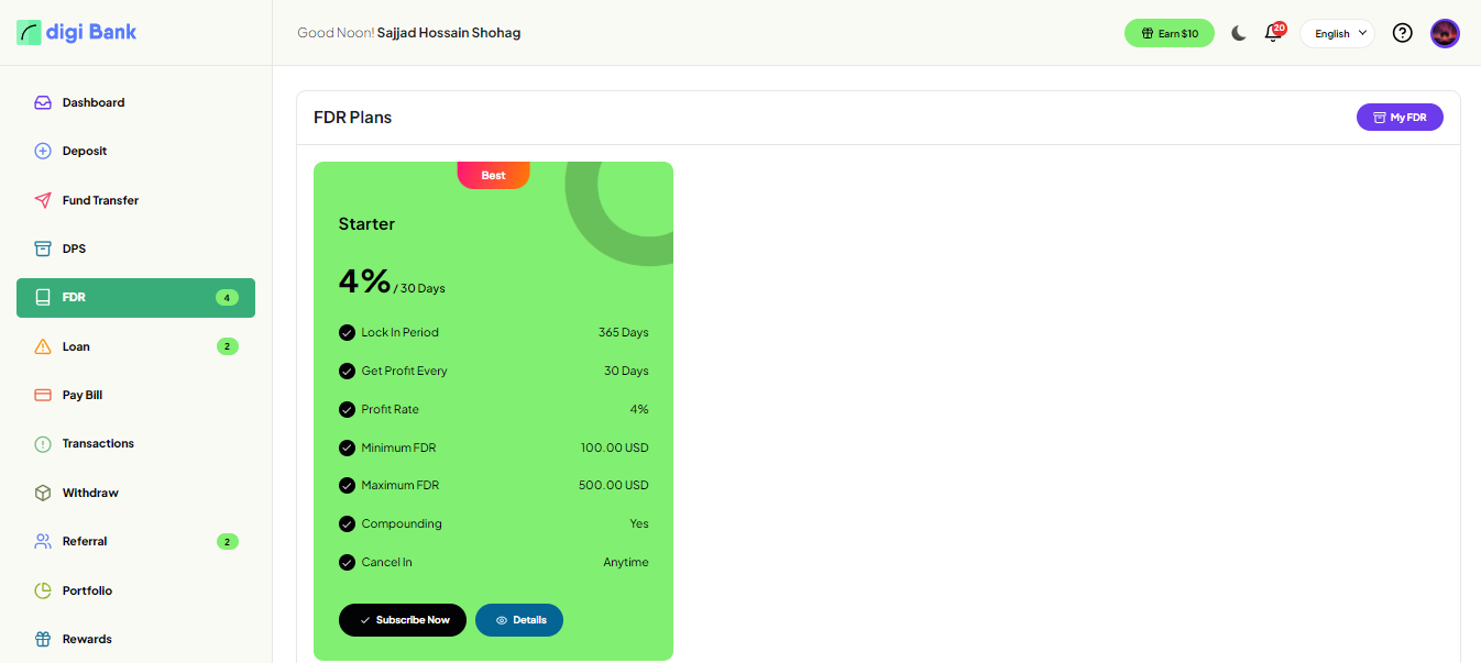 User can see all active fdr plan and subscribe.