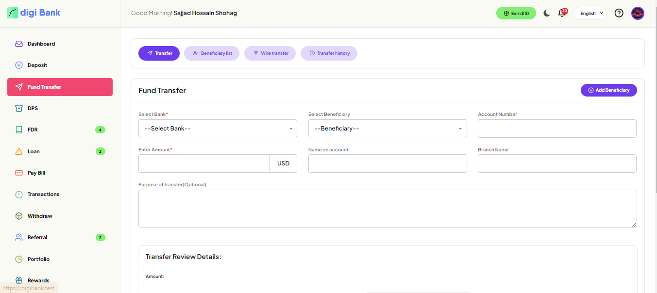 User can transfer the fund to beneficiary or any user.