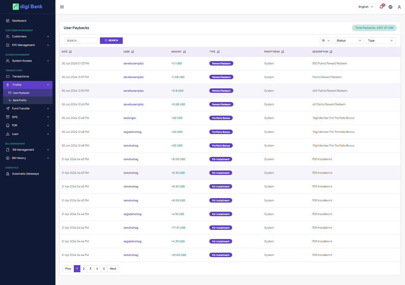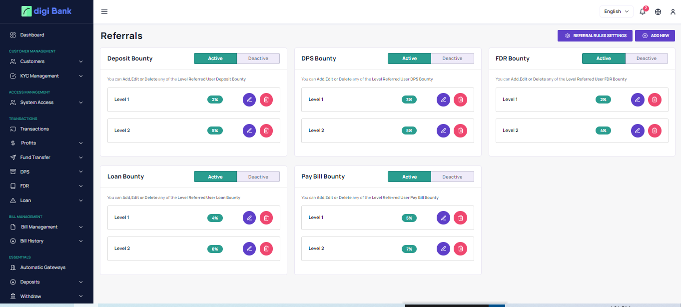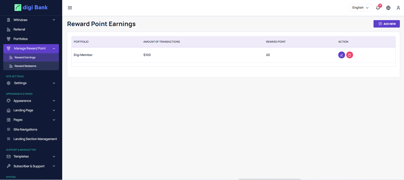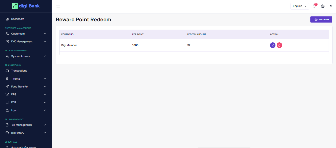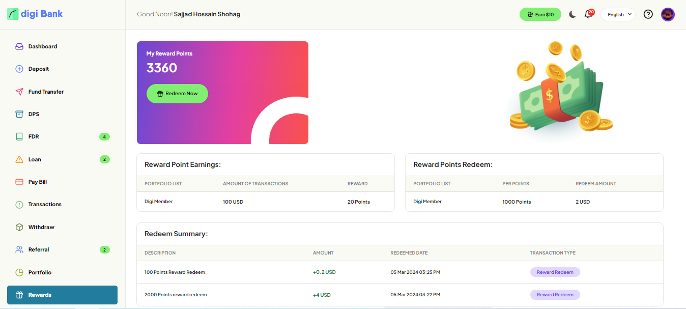 redeem the rewards and get paid from the bank. All these features are controlled from the Admin