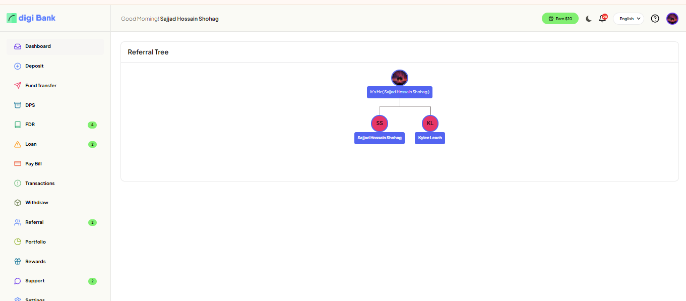 All the user Referral details will show here. The referral bonus will show here.