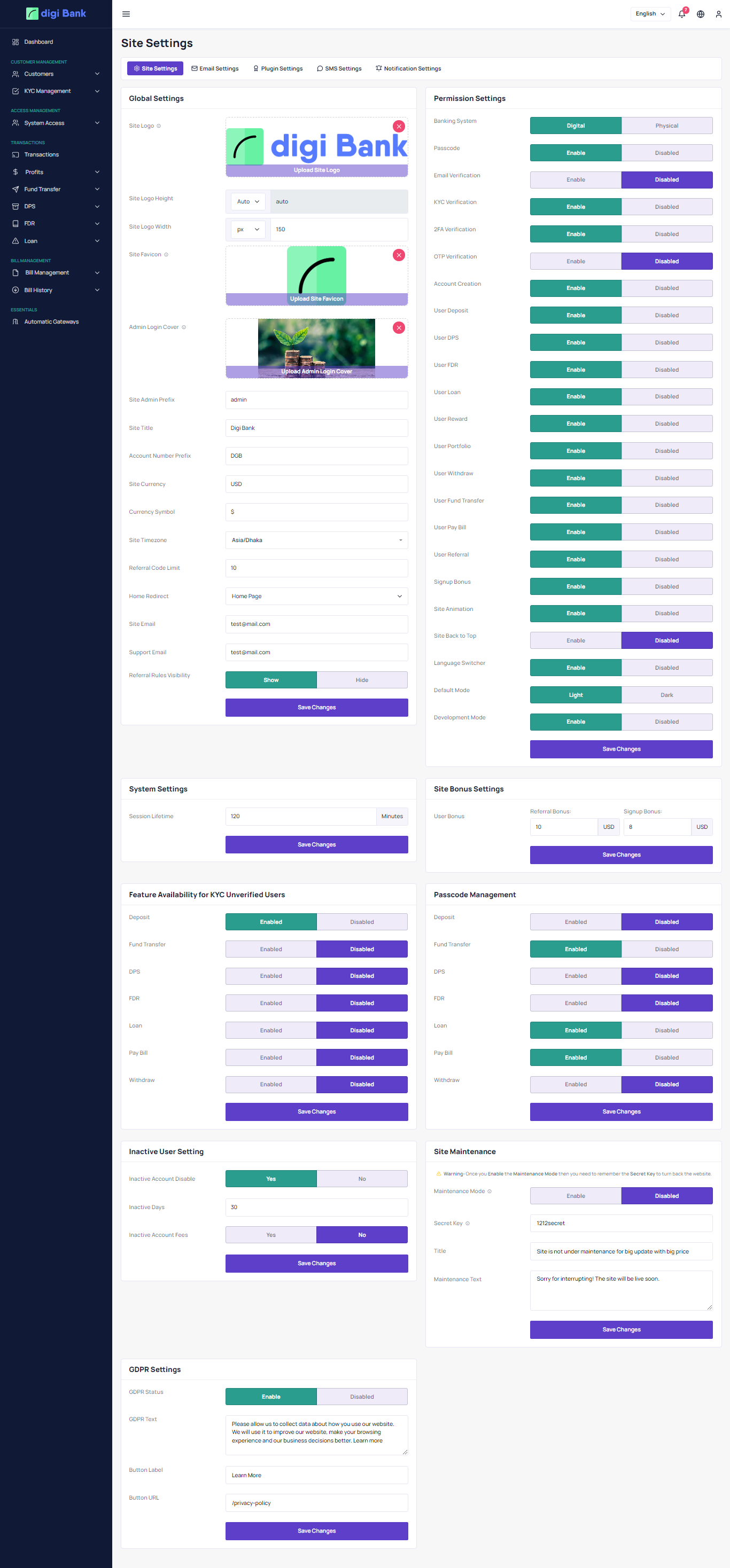 - GDPR Settings