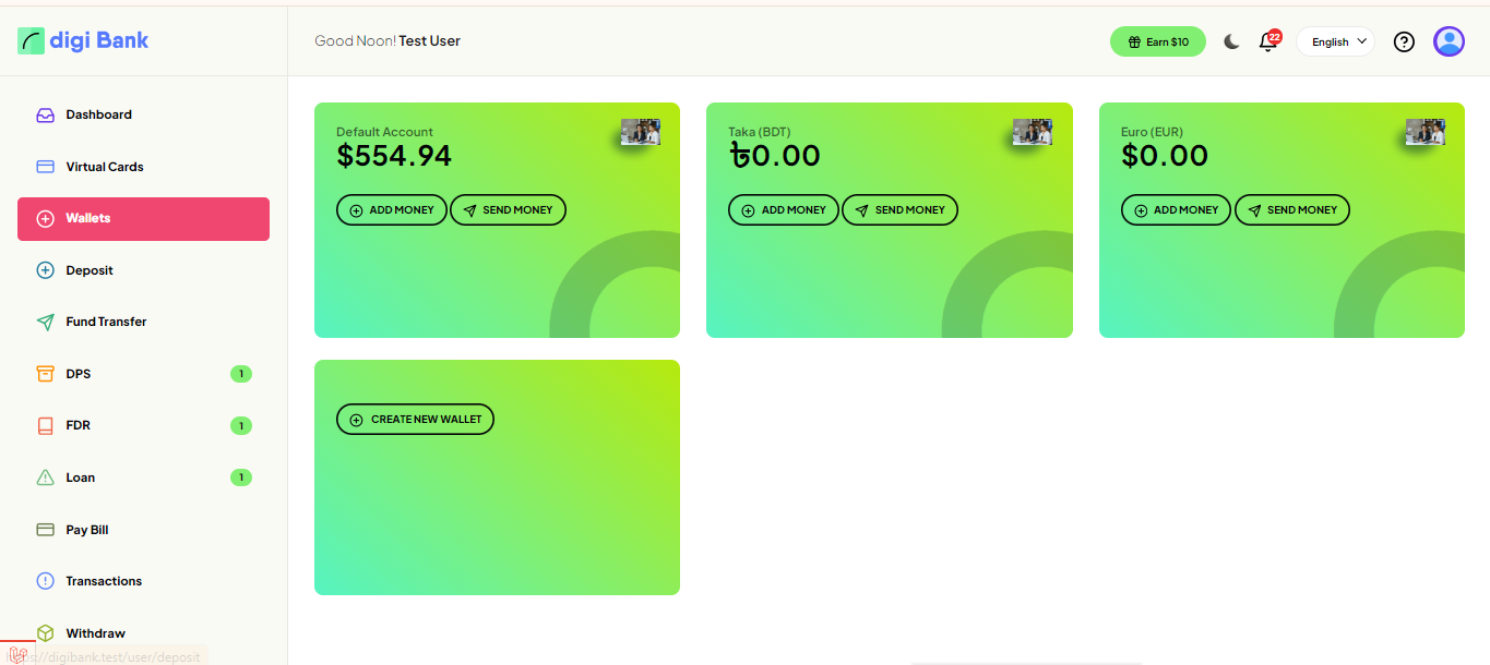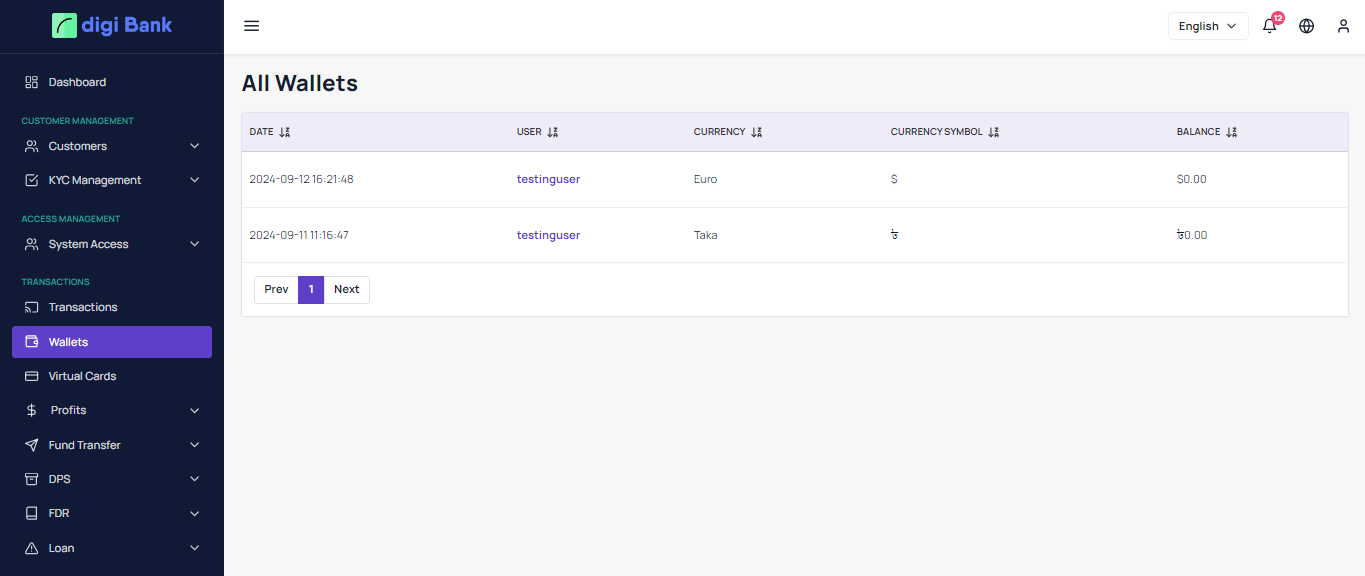 User can see all the wallets and add money also deleting wallet from this page.